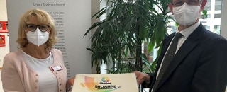 Anlässlich des 50. Geburtstags der Glücksspirale spendiert WestLotto dem CBT-Wohnhaus An St. Georg (Köln) eine Torte. Einrichtungsleiterin Anna Christine Wagner und Dr. Frank Johannes Hensel, Diözesan-Caritasdirektor und Vorsitzender der Arbeitsgemeinschaft der Freien Wohlfahrtspflege NRW, schneiden die Torte an – für Bewohnerinnen, Bewohner und das Personal. Nach dem Motto „Wer Geburtstag hat, gibt Kuchen aus“ verschenkt WestLotto insgesamt 100 Torten an soziale Einrichtungen in NRW. Mit den Erträgen der Glücksspirale wird seit vielen Jahren auch die Wohlfahrtspflege gefördert.